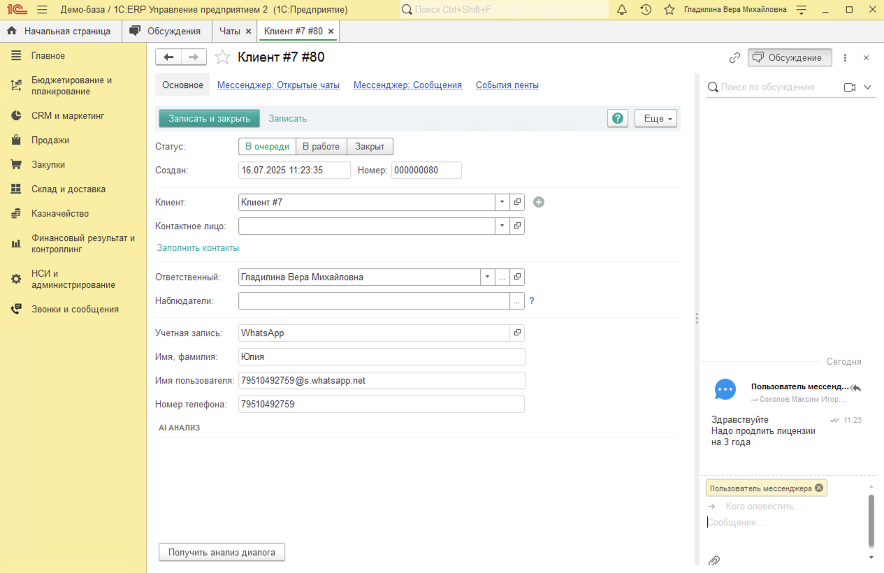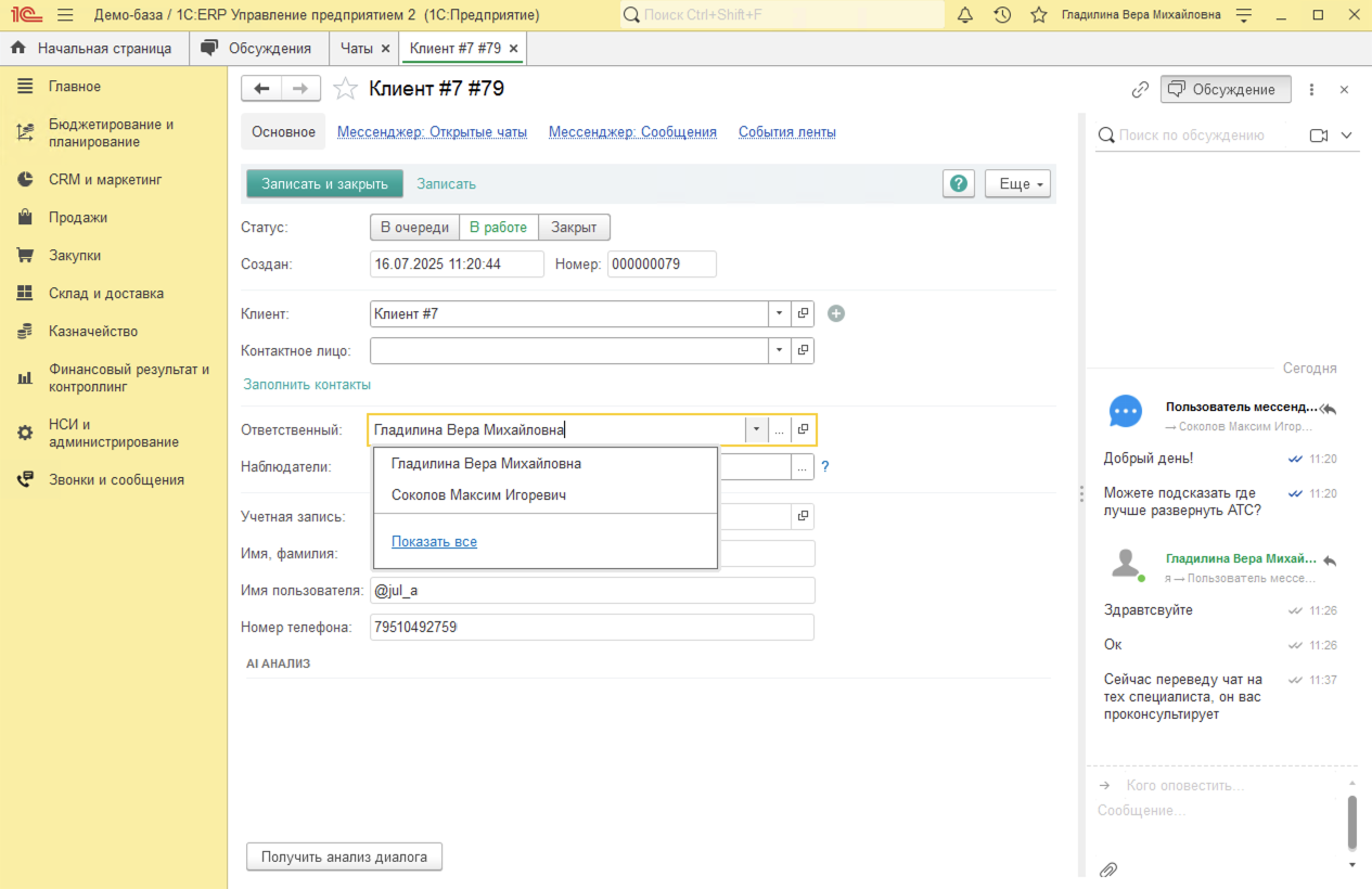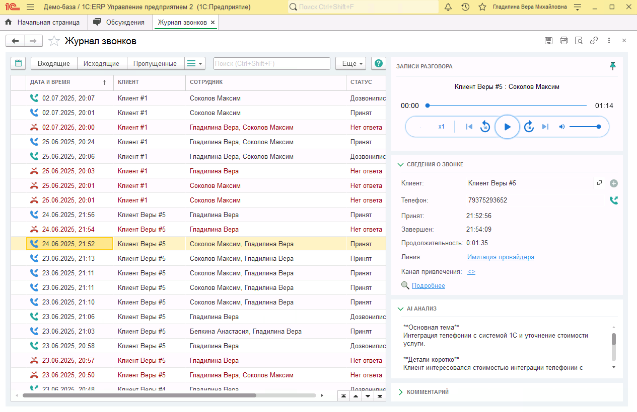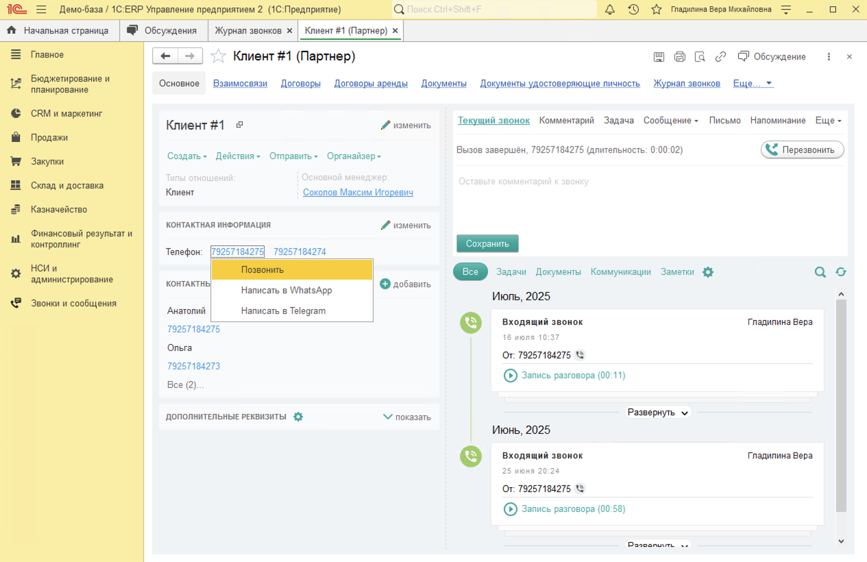 Звонки в 1С:ERP. Интеграция 1С:ERP с телефонией