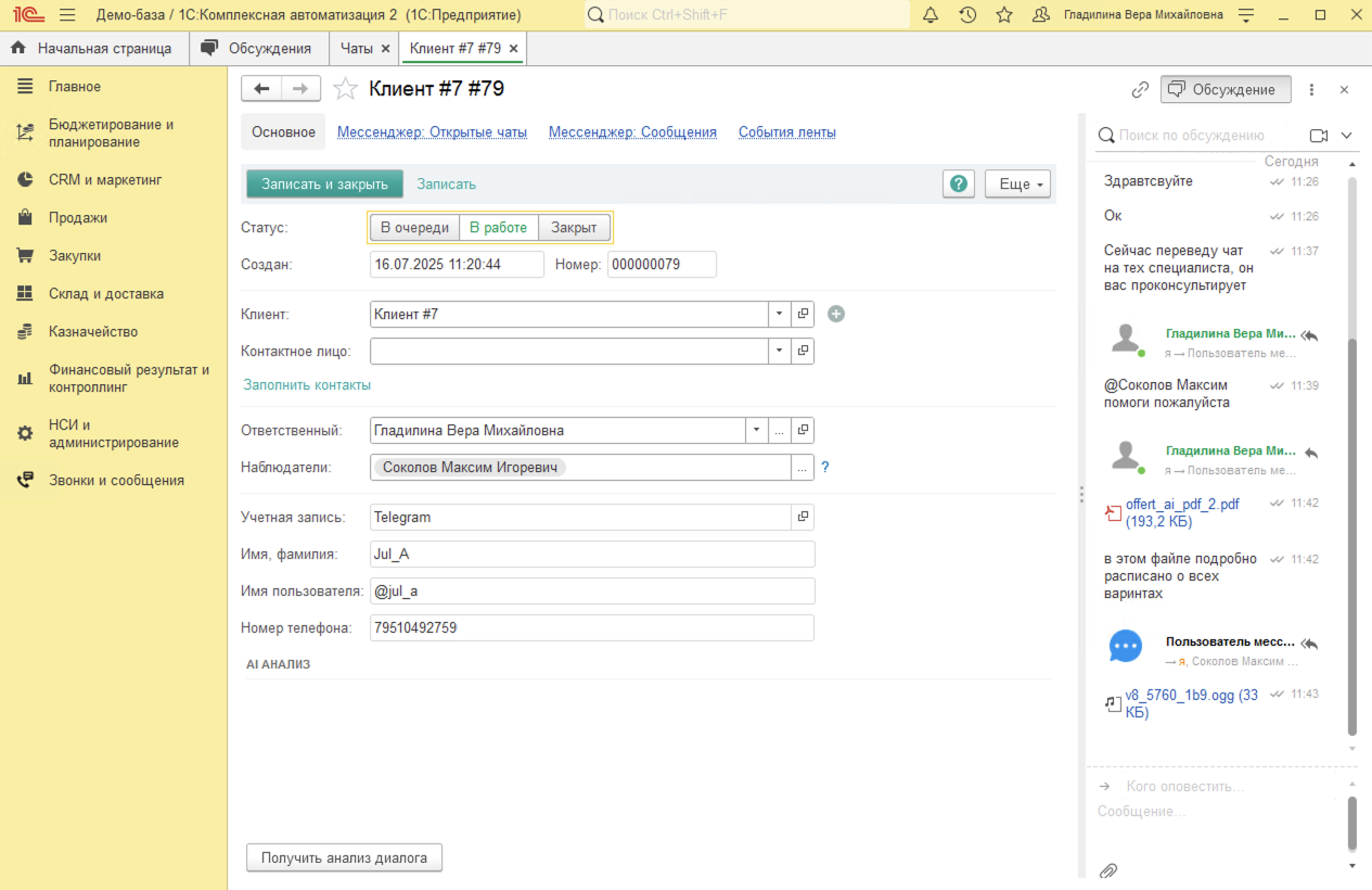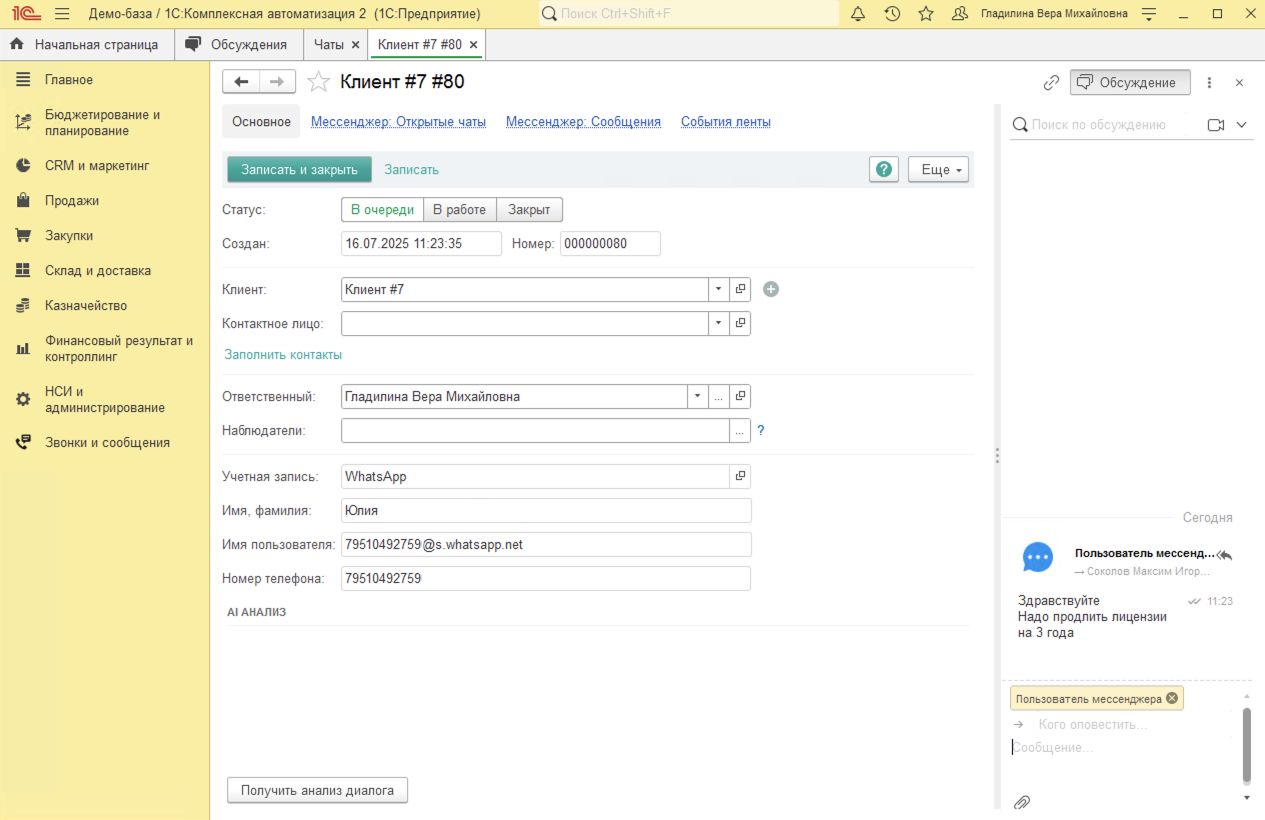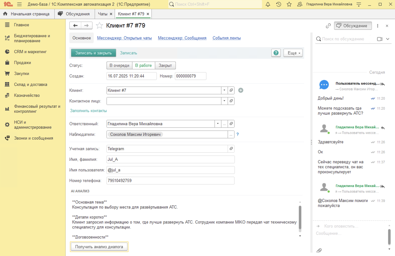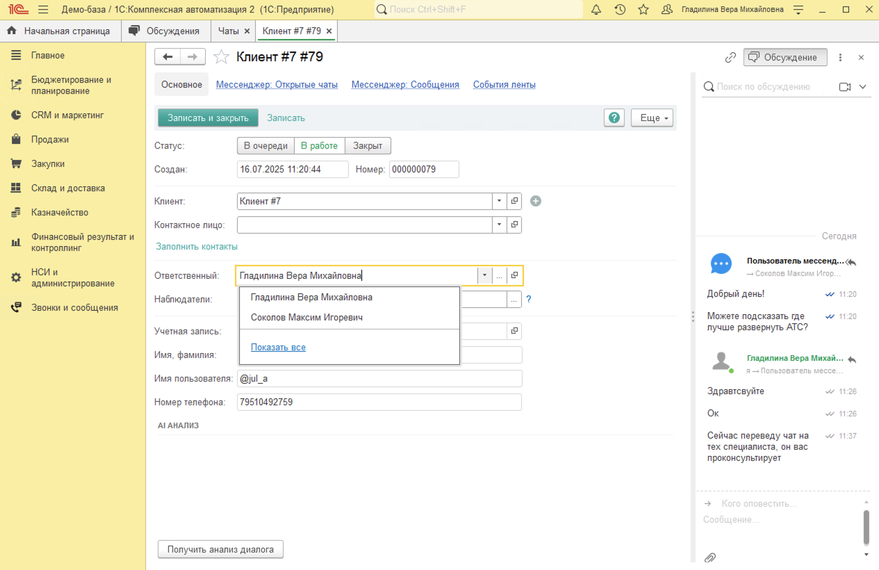 Звонки в 1С:КА. Интеграция 1С:КА с телефонией