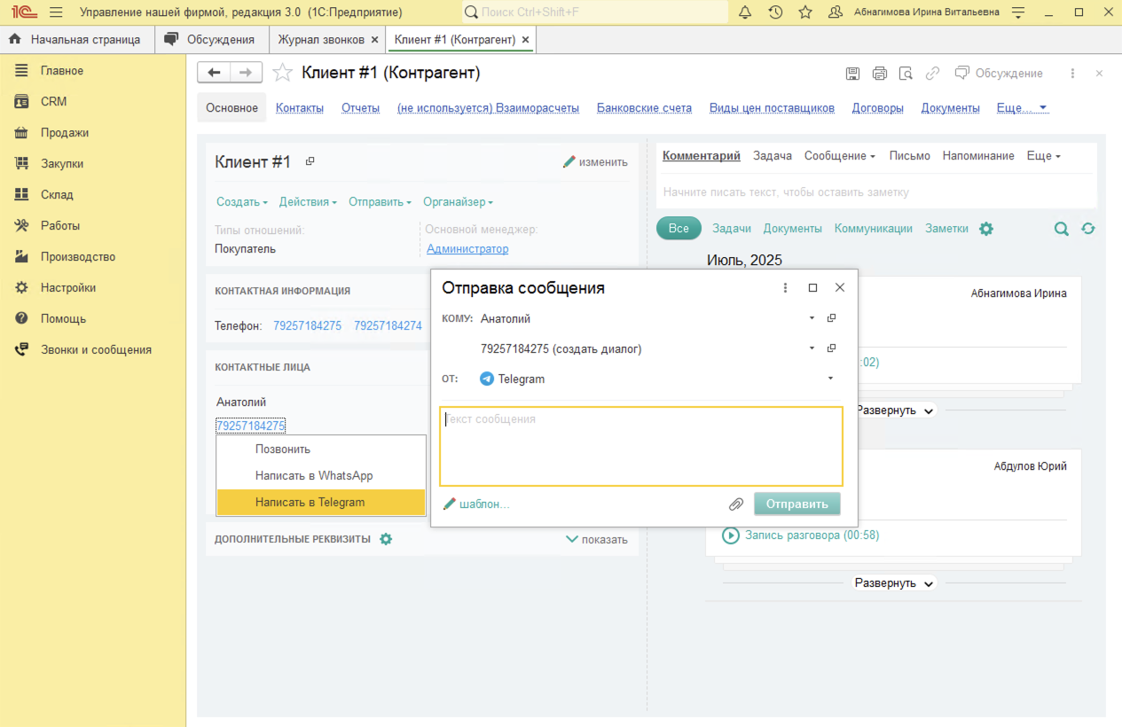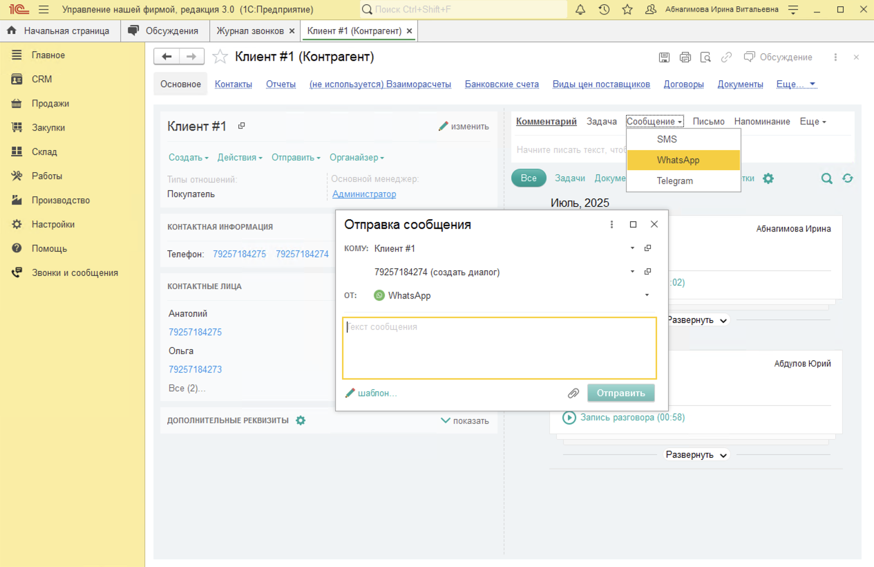 Звонки в 1С:УНФ. Интеграция 1С:УНФ с телефонией